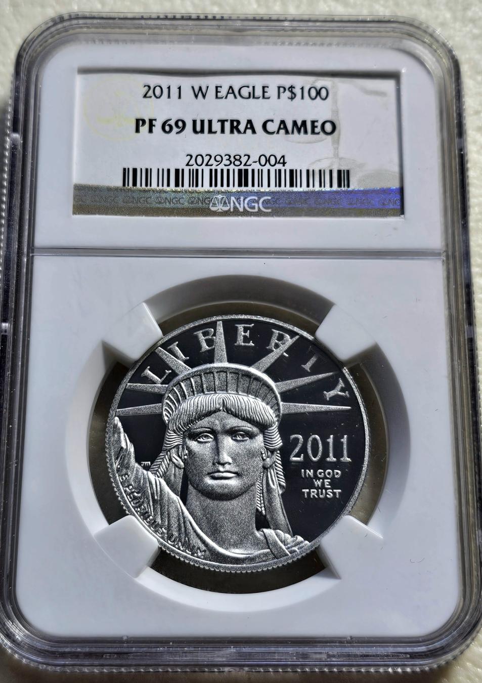 Zertifizierte Platinmünze (NGC) Eagle Freiheitsstatue 1 oz. 100 $; 2011- PF 69 Ultra Cameo.