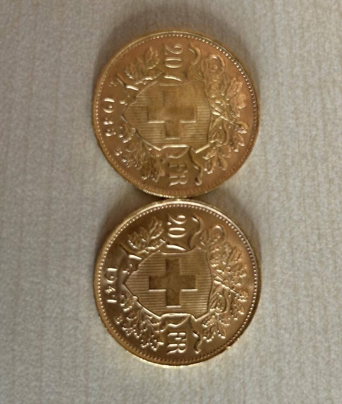 2 vrenelis en or de 20.- CHF