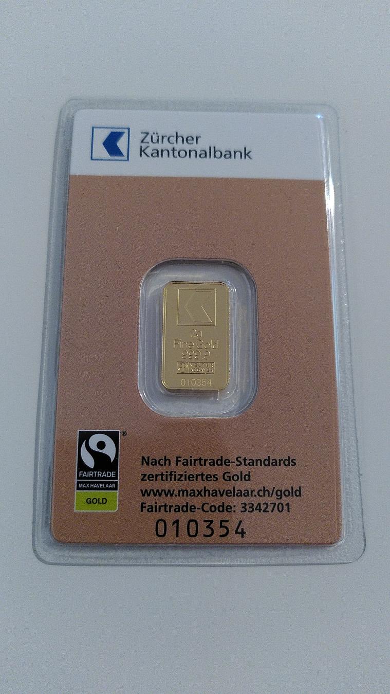 Kleiner 2 g Goldbarren von ZKB zu verkaufen. Fairtrade Gold.